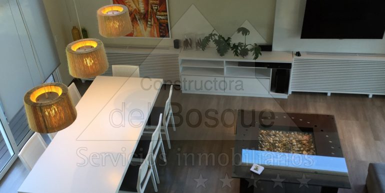 Living, comedor y cocina integrados en ambiente luminoso, aire aconcdicionado, Smartv curvo…