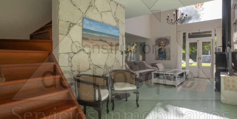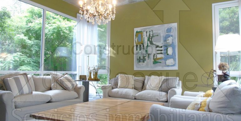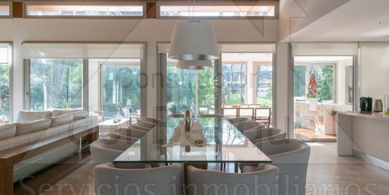 En su interior, la casa deslumbra con un amplio living y comedor…
