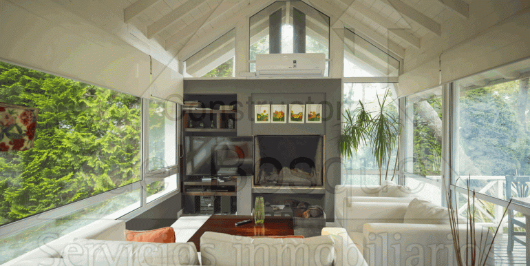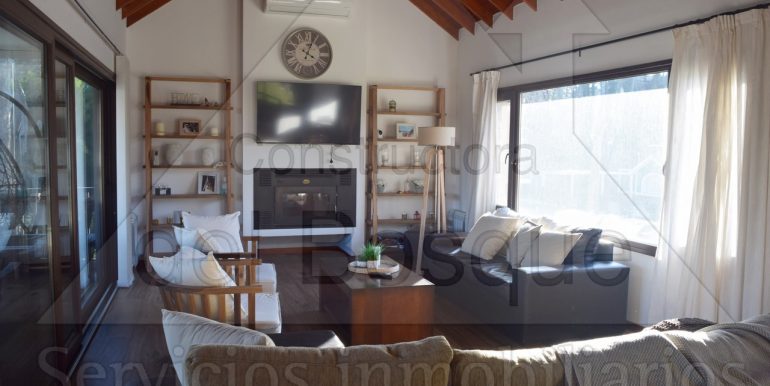 Living con hogar a leña, Smart Tv 50, aire acondicionado y salida…