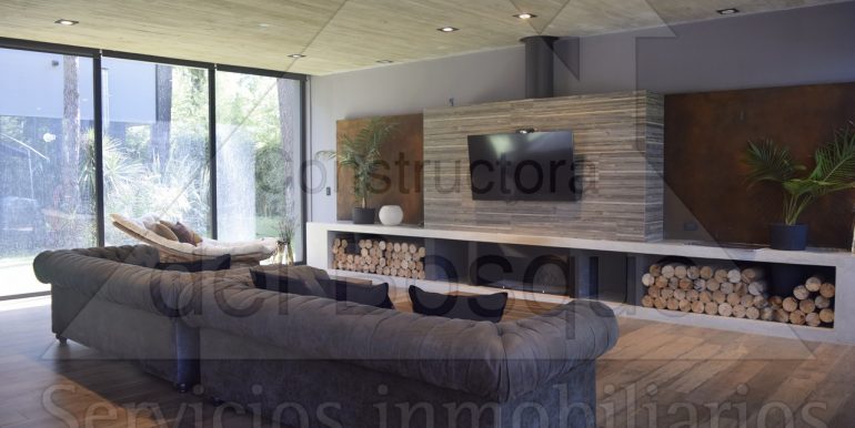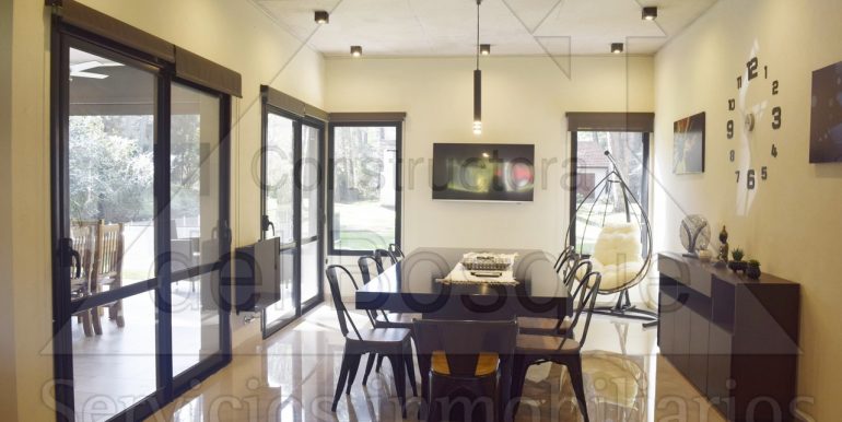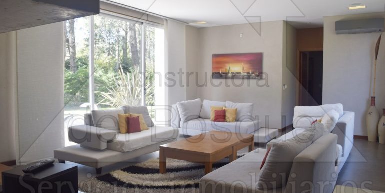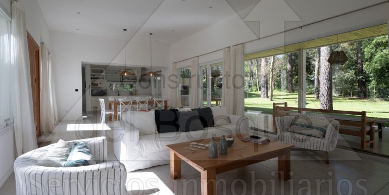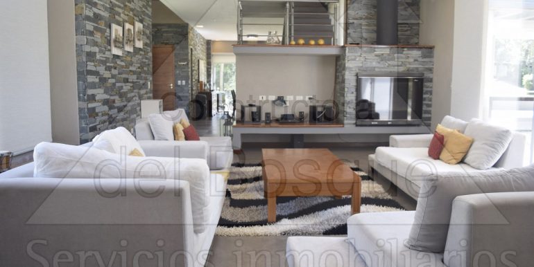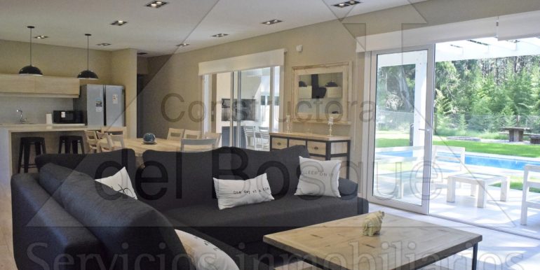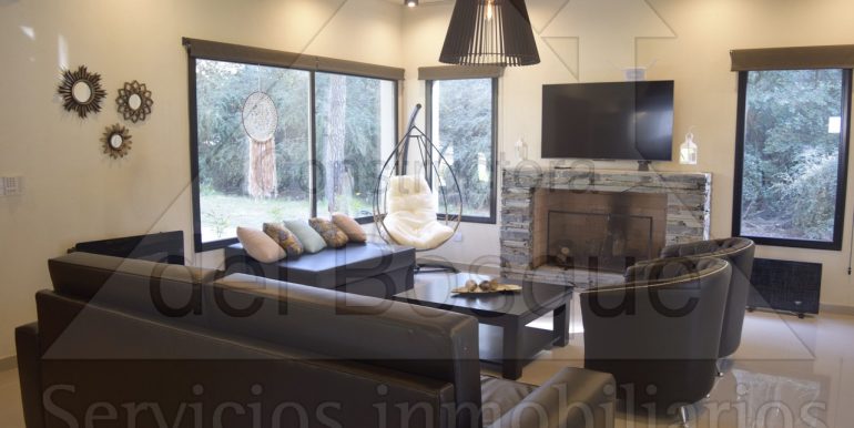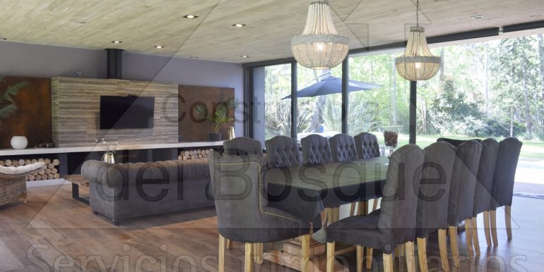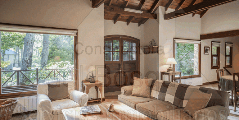 Al ingresar encontramos el living con grandes ventanales,vistas al bosque, salida al…