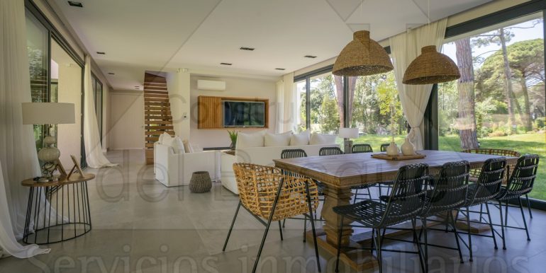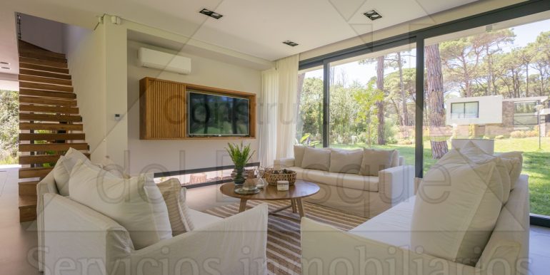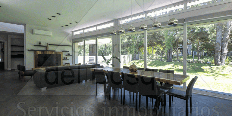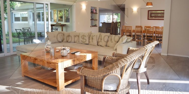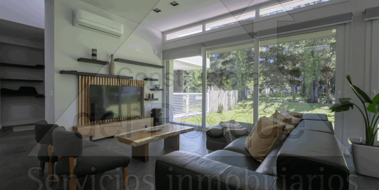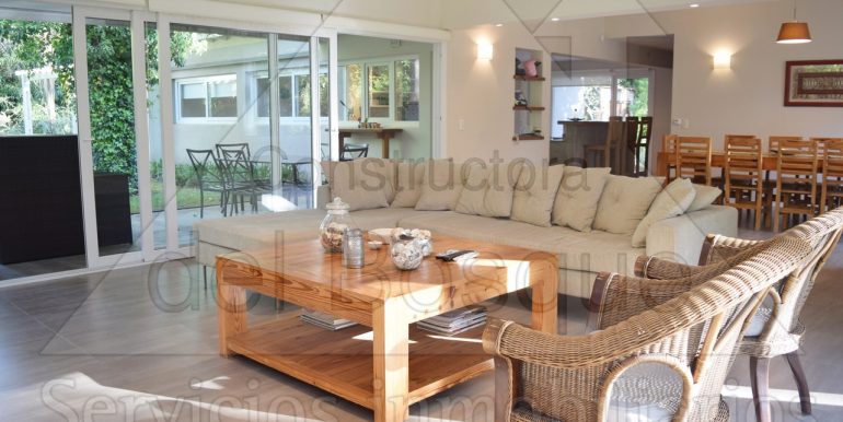 Living con grandes ventanales, puertas balcón que comunican al jardín, cuenta con…