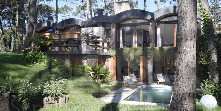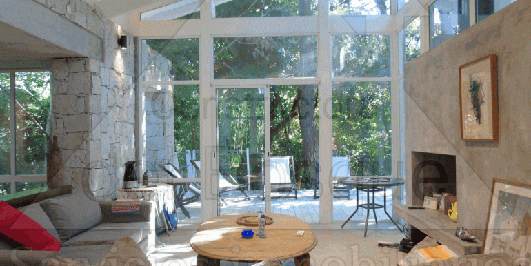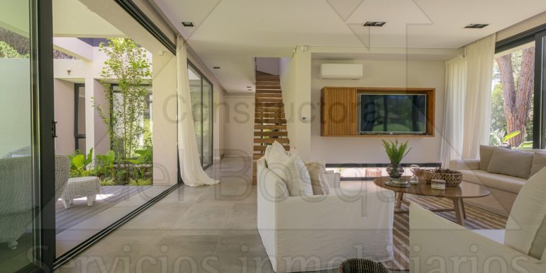 Al ingresar living en desnivel con hogar a leña, Smart TV de…