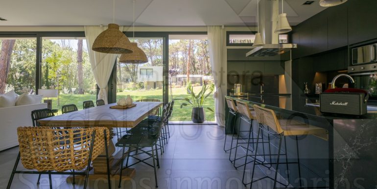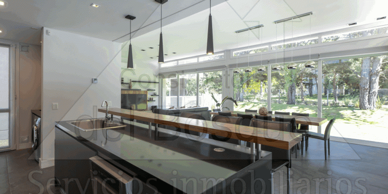 Living, comedor y cocina integrados con hogar a leña, LCD de 32…