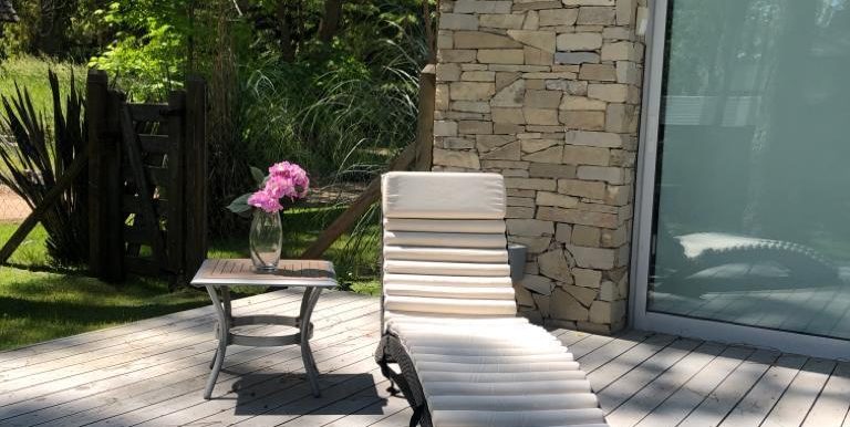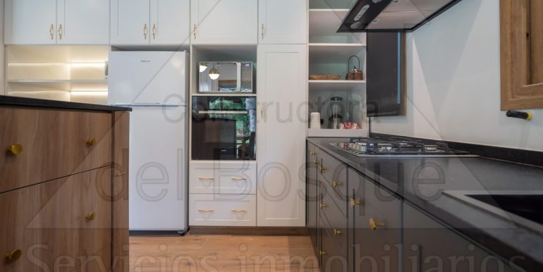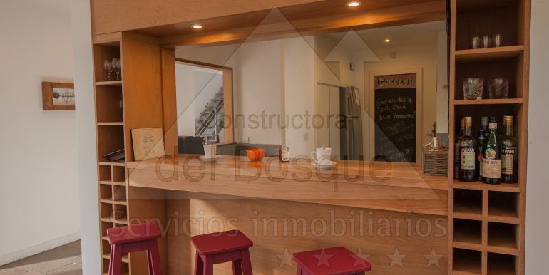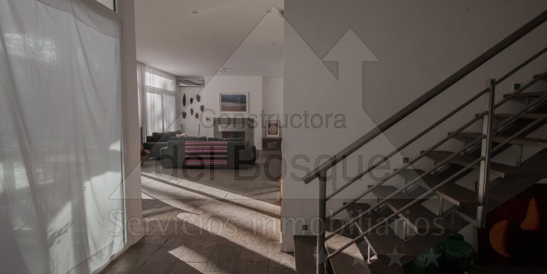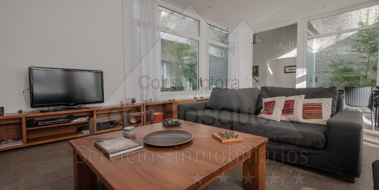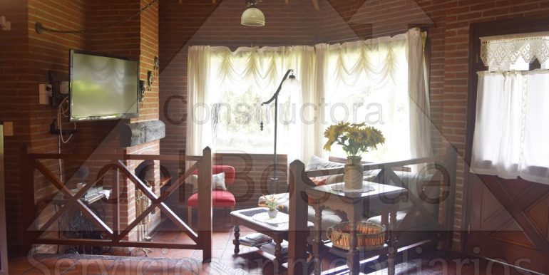 Entrada por escalera, living en desnivel con hogar a leña y LCD,…