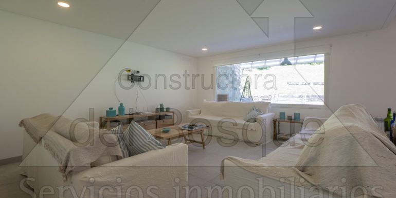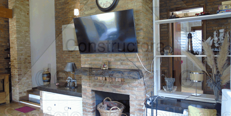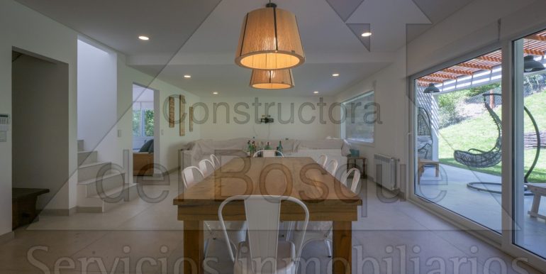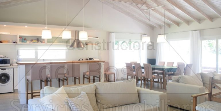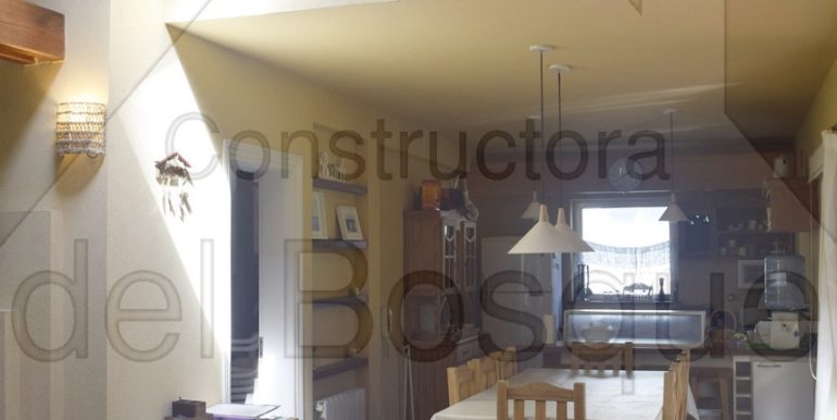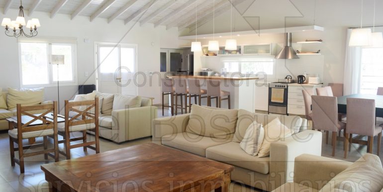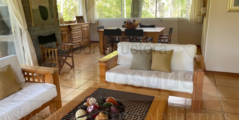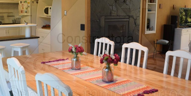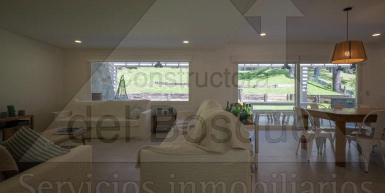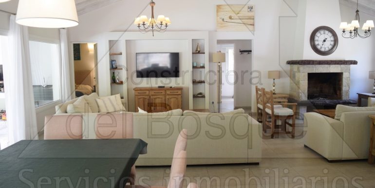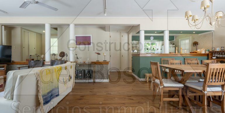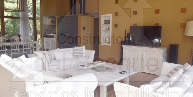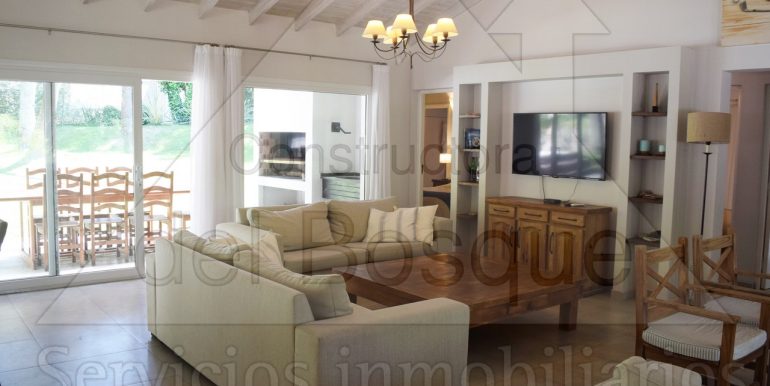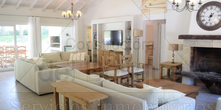 Living y comedor integrados con hogar a leña, Smart TV 50, ventilador…