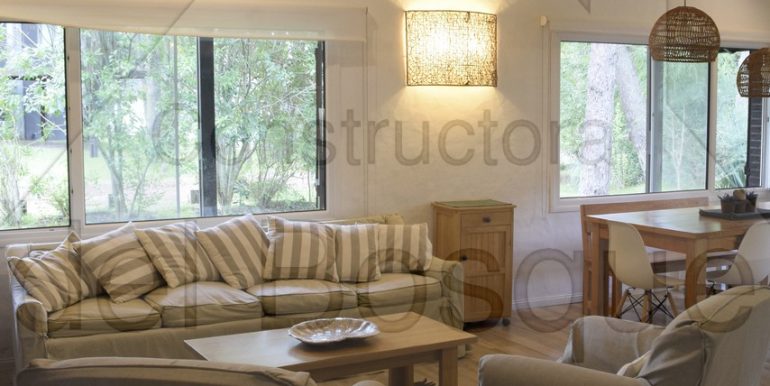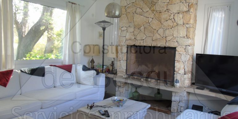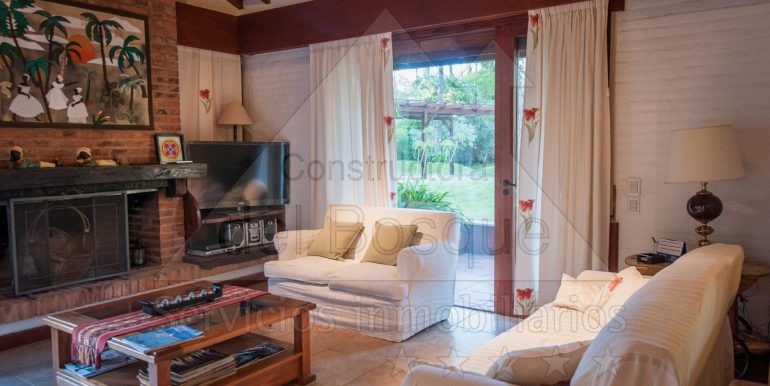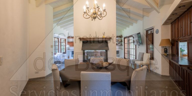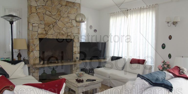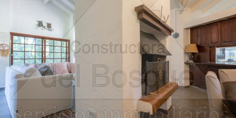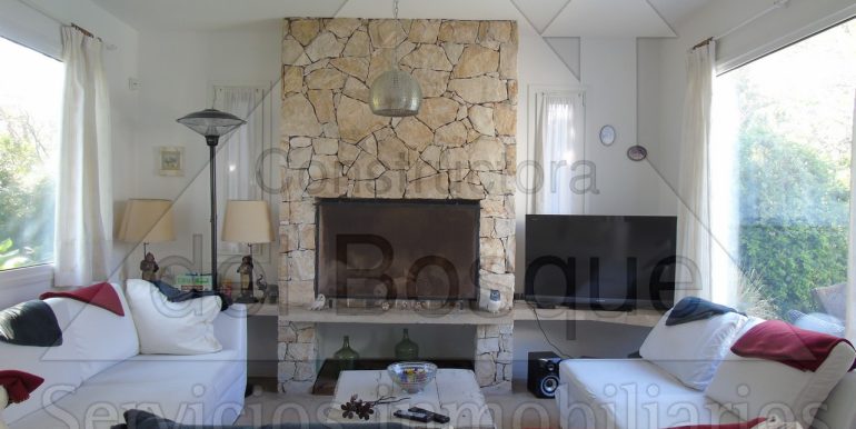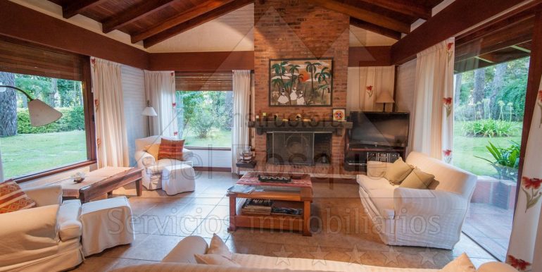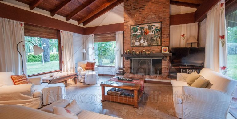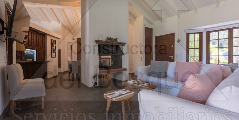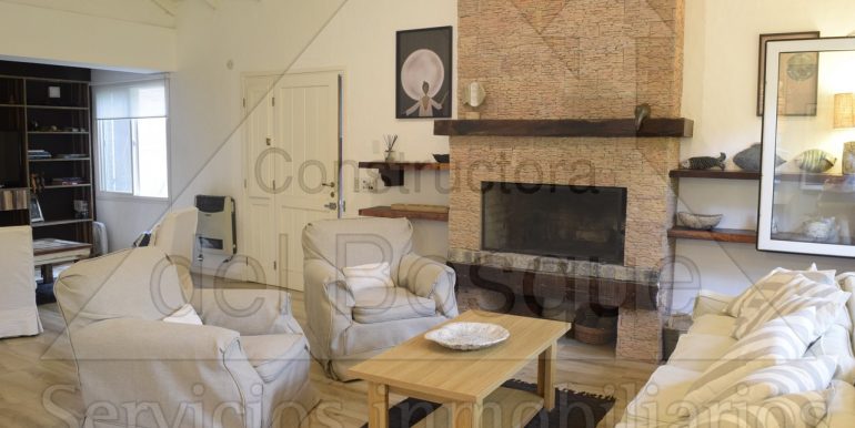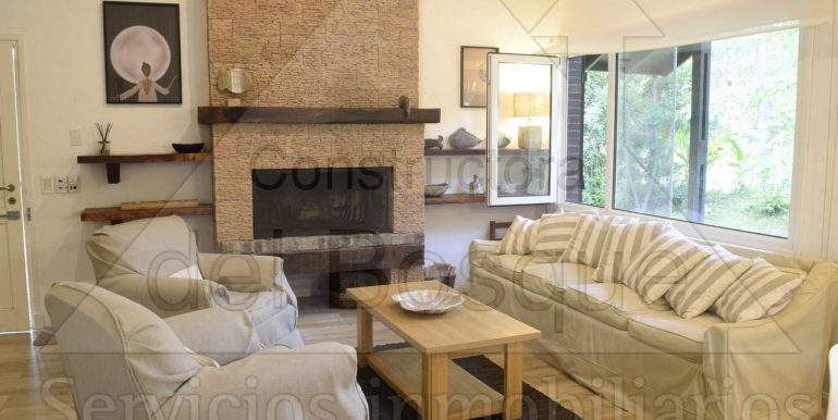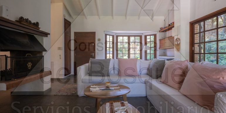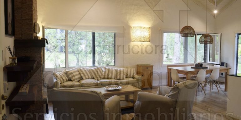 Living con grandes ventanales, hogar a leña y Smart TV de 40.…