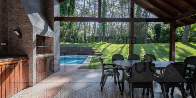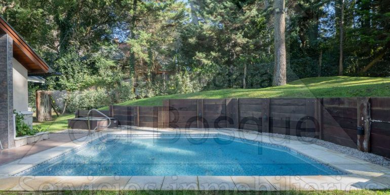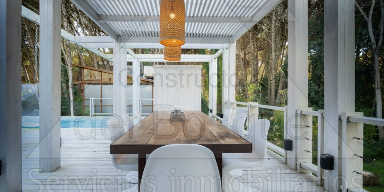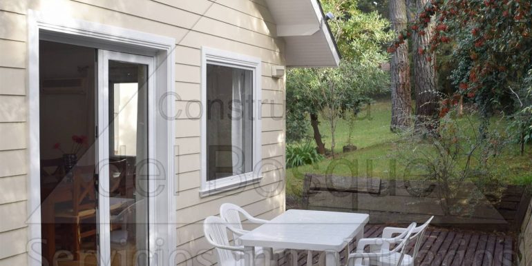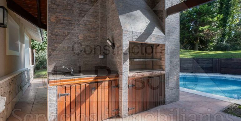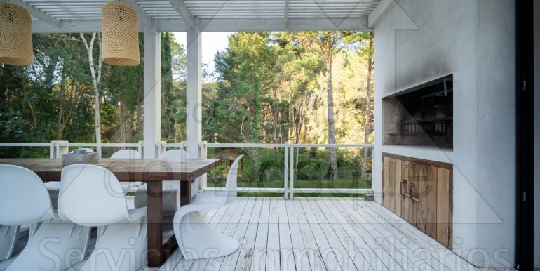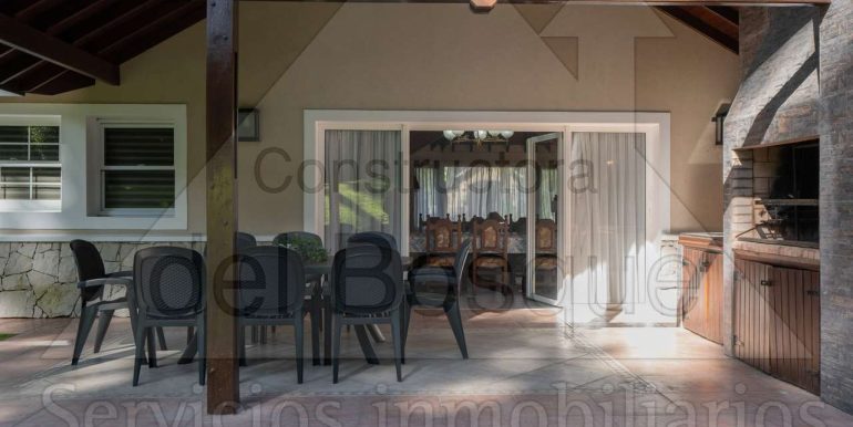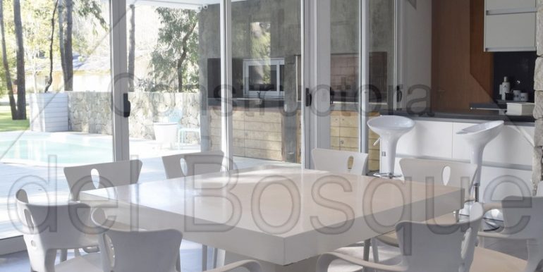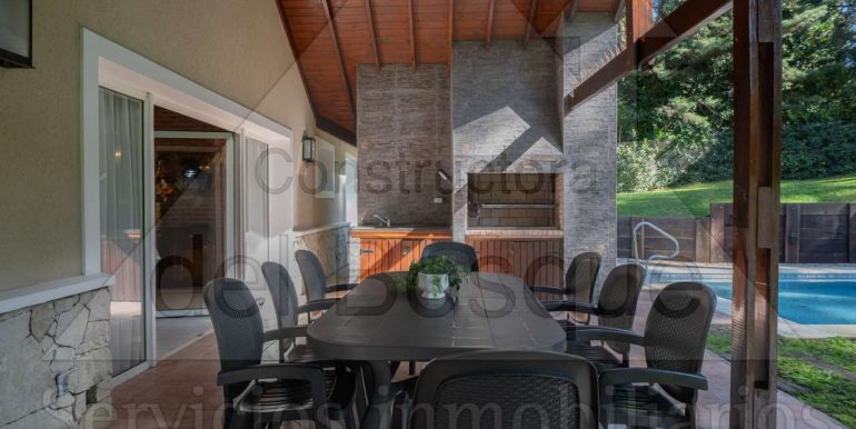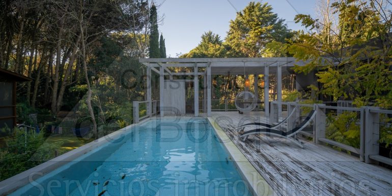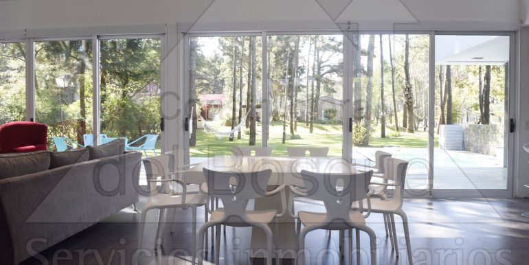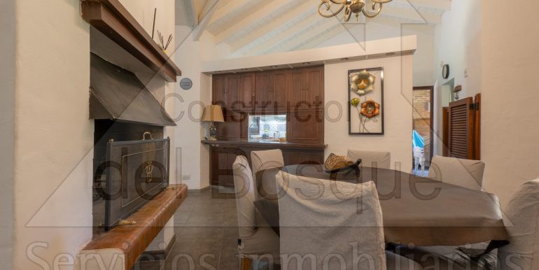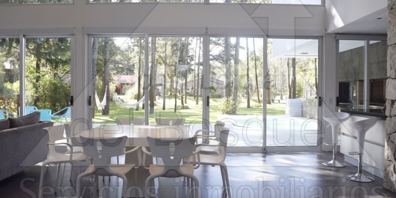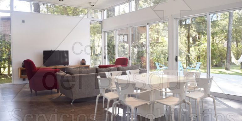 Living con grandes ventanales, hogar a leña y Smart TV de 40.…