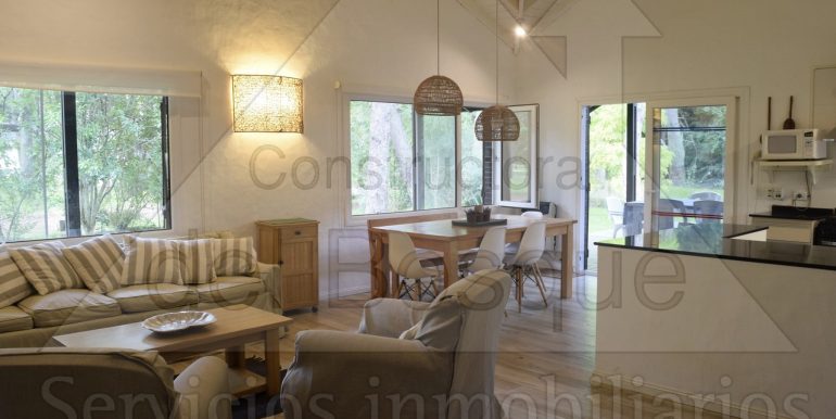 Living y comedor integrados con hogar a leña, Smart 40, aire acondicionado…