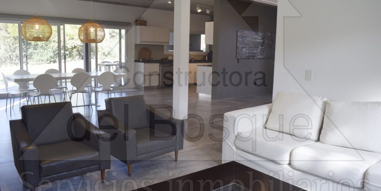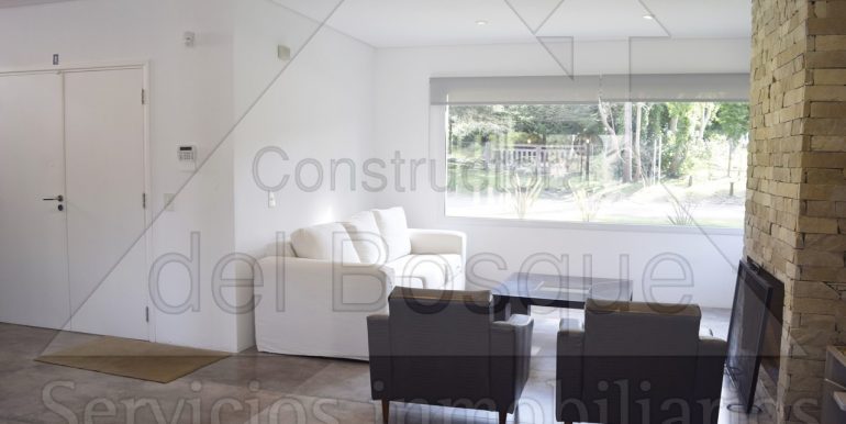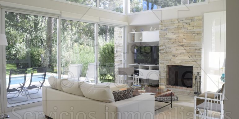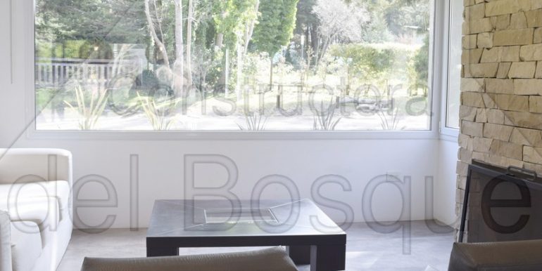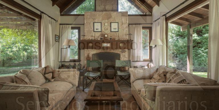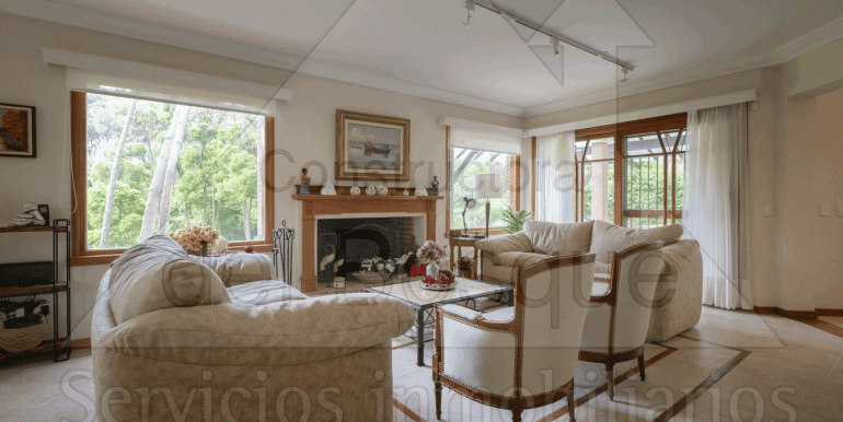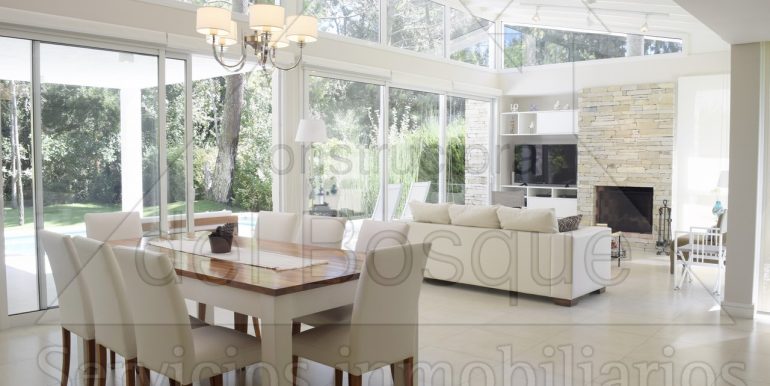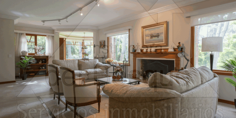 Amplio living, con ventanales que ofrece una vista inigualable al bosque. El…