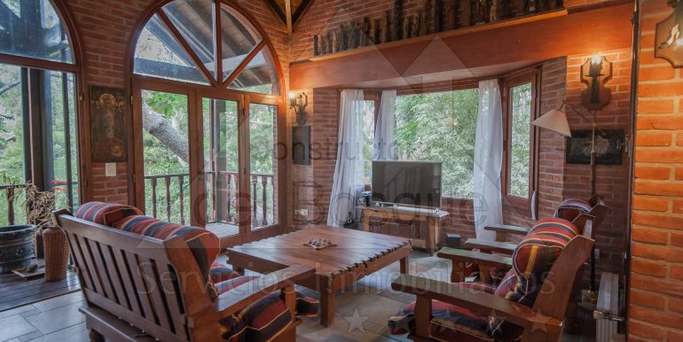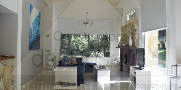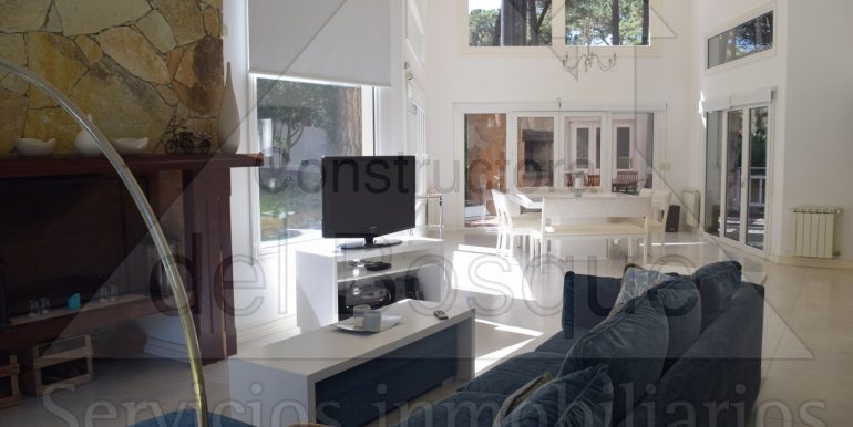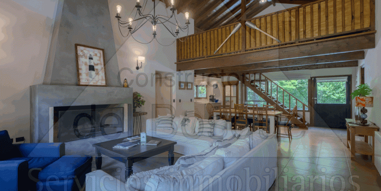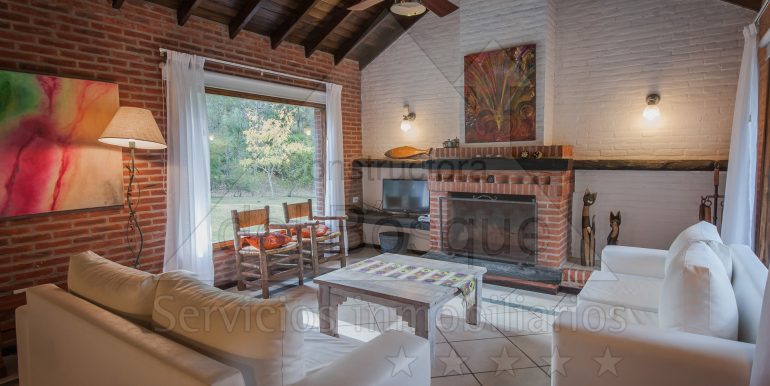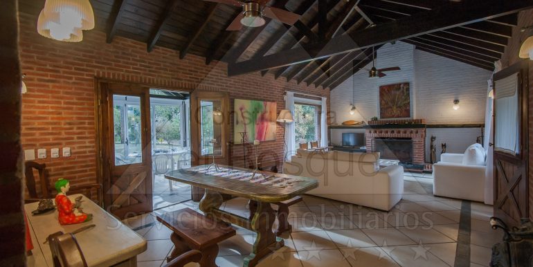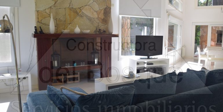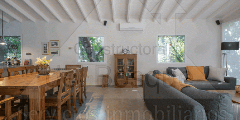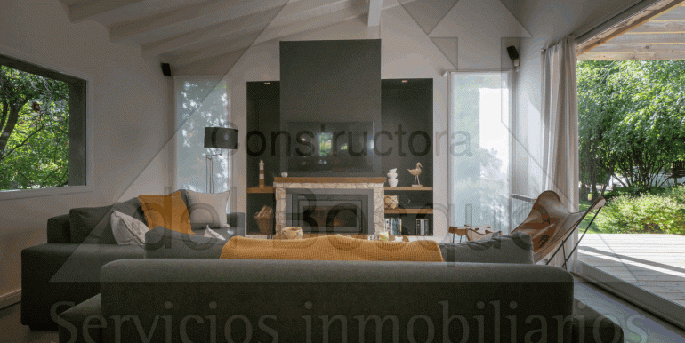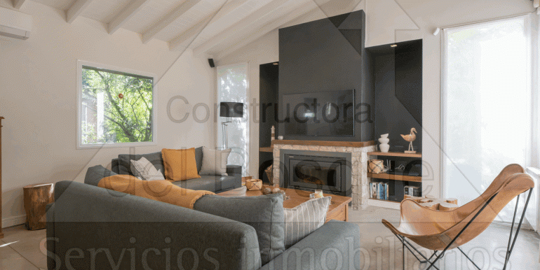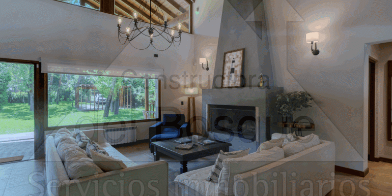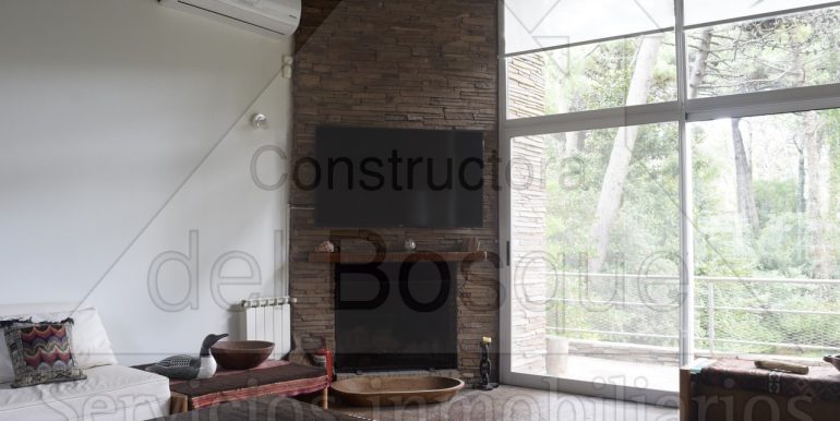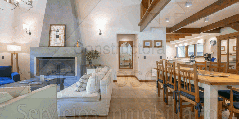 Living con hogar a leña, Smart TV, en desnivel, comedor integrado y…
