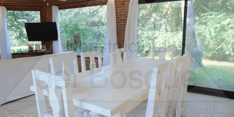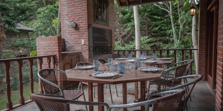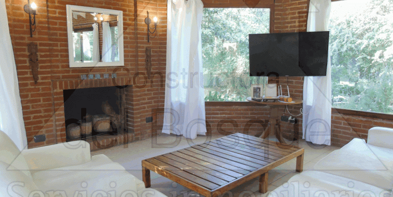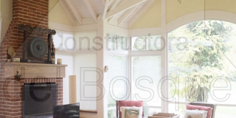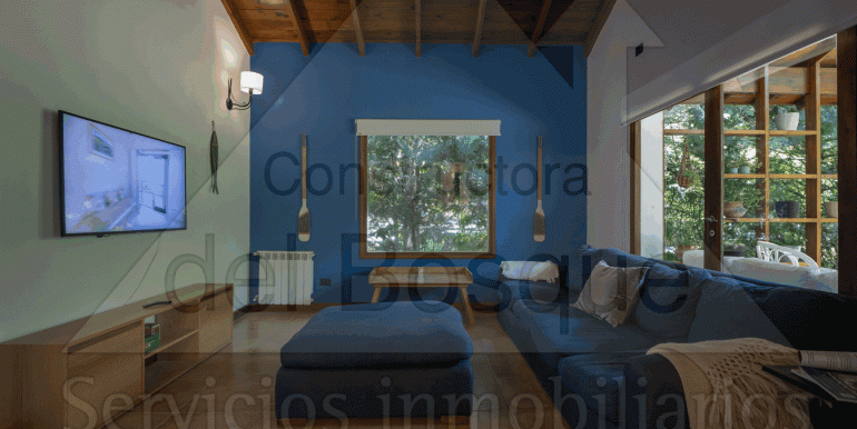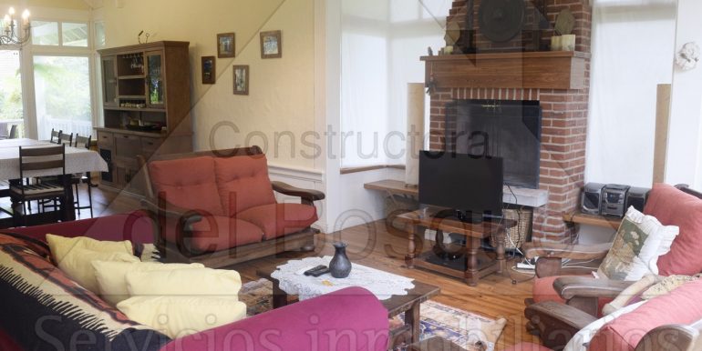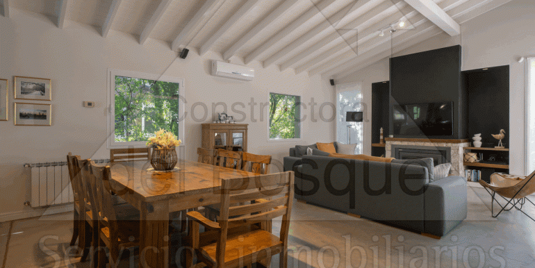 Living y comedor integrados con hogar a leña, Smart TV de 55,…