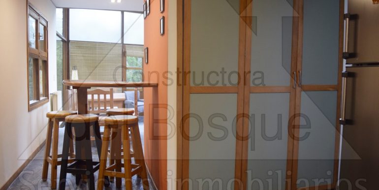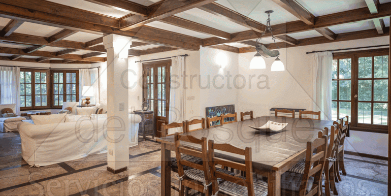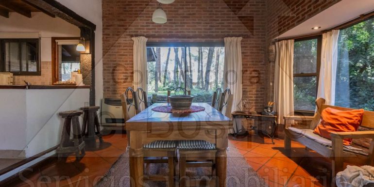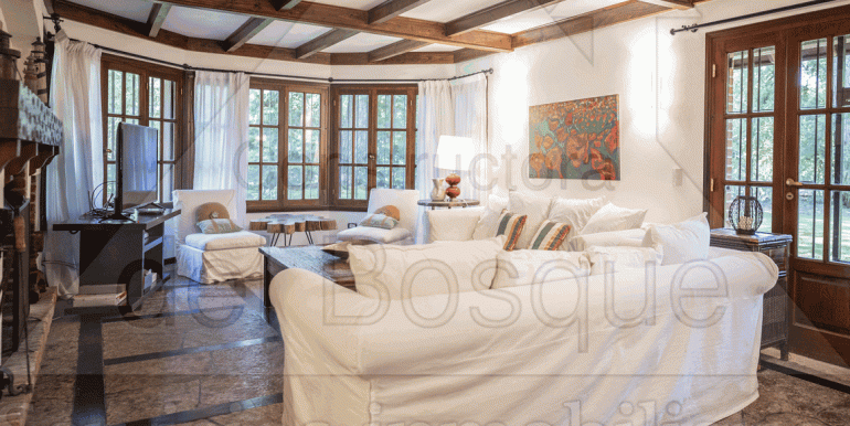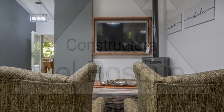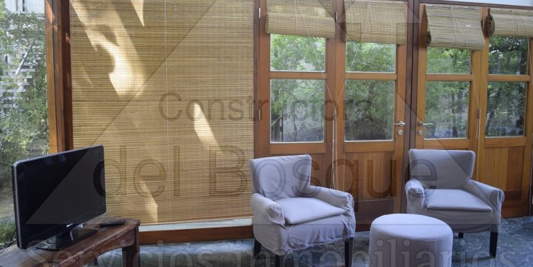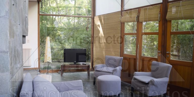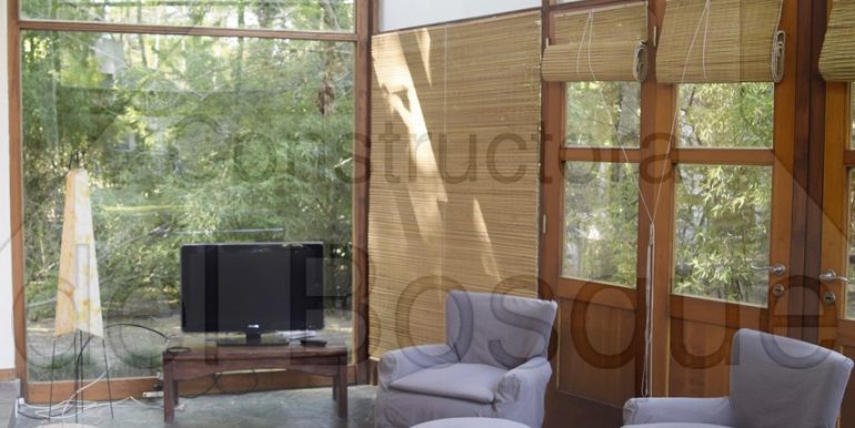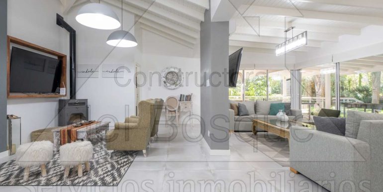 Living y comedor integrados, donde los amplios ventanales permiten vista al bosque.…