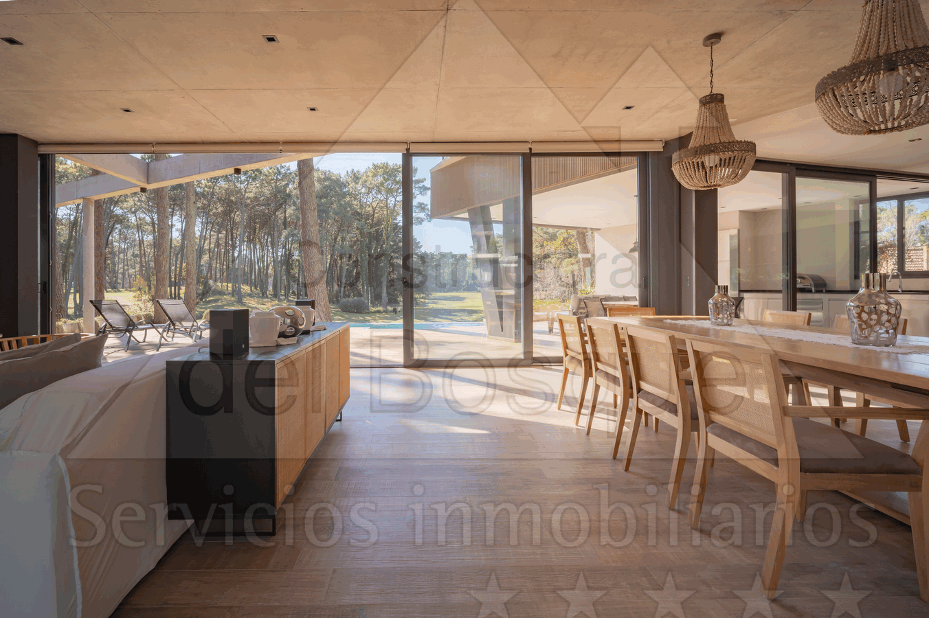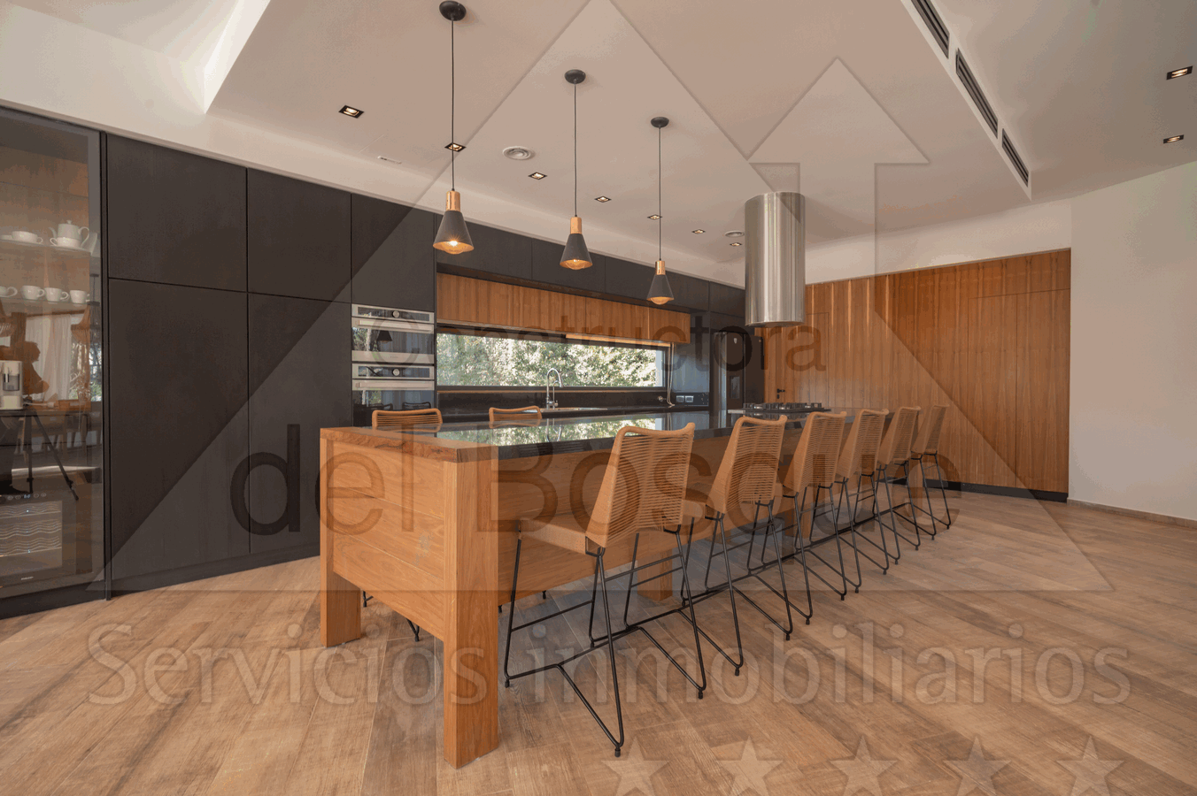 Amplio living con vista al golf semi integrado al comedor. Cocina separada, isla y comedor diario.