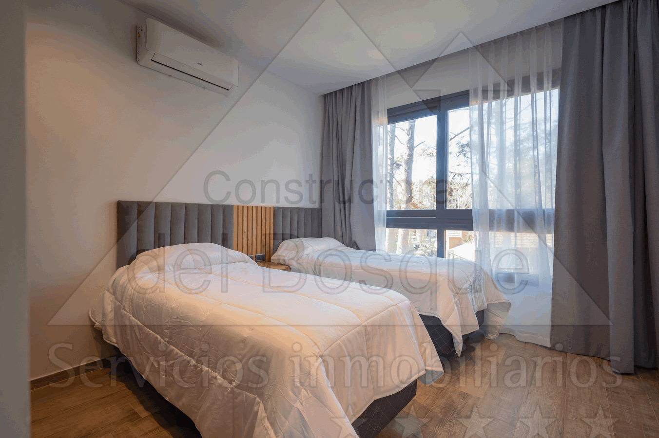 3° Dormitorio en suite con dos camas simples, placard, blackout, aire acondicionado,smartv y baño completo con ducha.