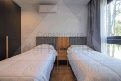 2° Dormitorio en suite con dos camas simples, placard, blackout, aire acondicionado, smartv y baño completo con ducha.