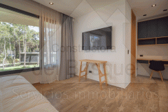 1° Dormitorio, master suite con vestidor, vista al golf, aire acondicionado, blackout, smartv y baño completo con doble bacha y ducha.