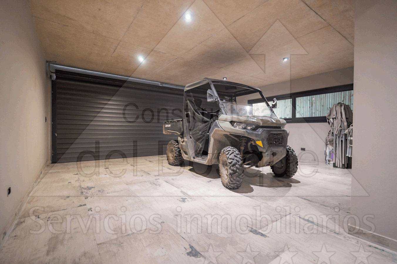 Garage para dos vehículos y cochera.