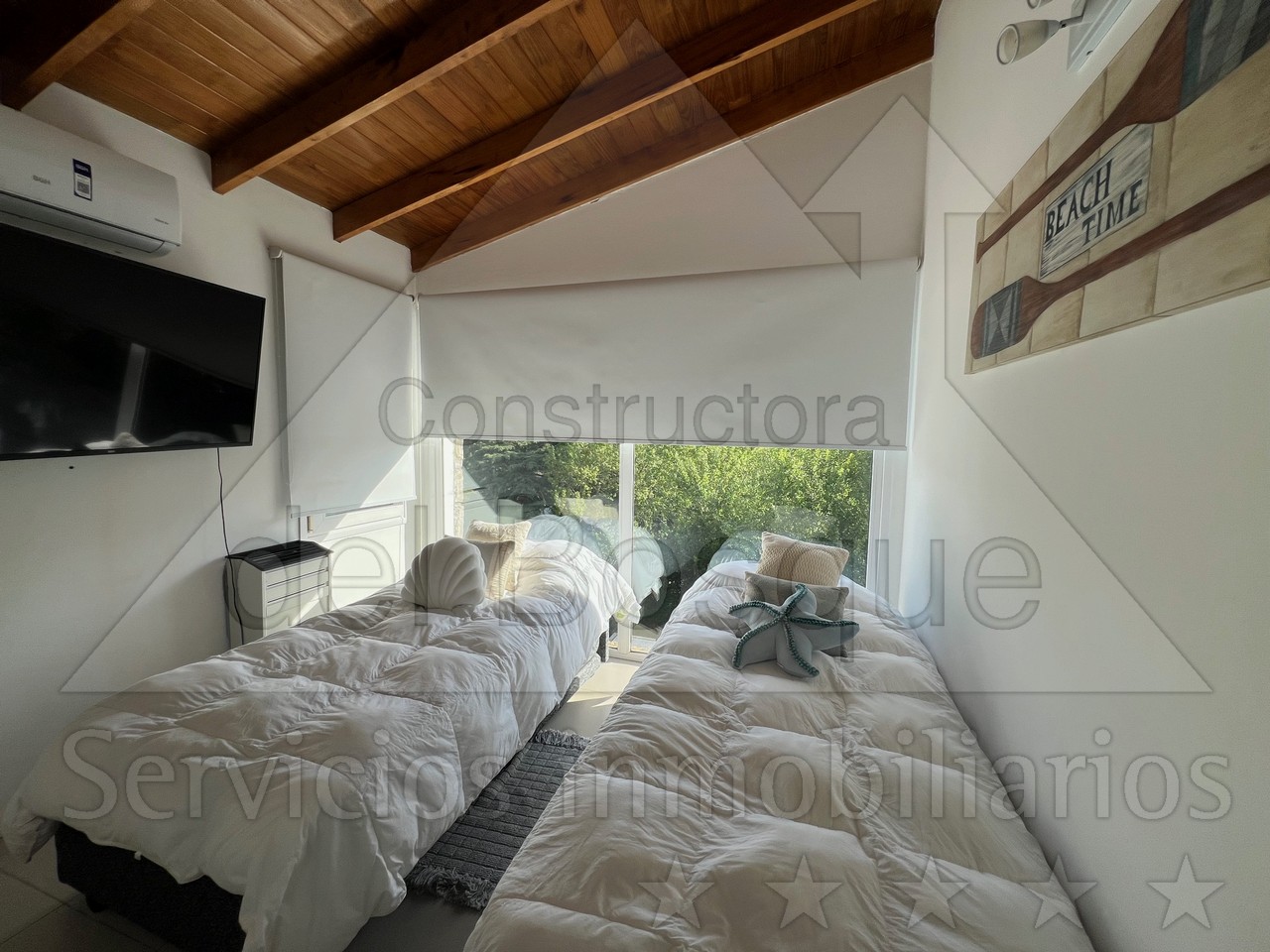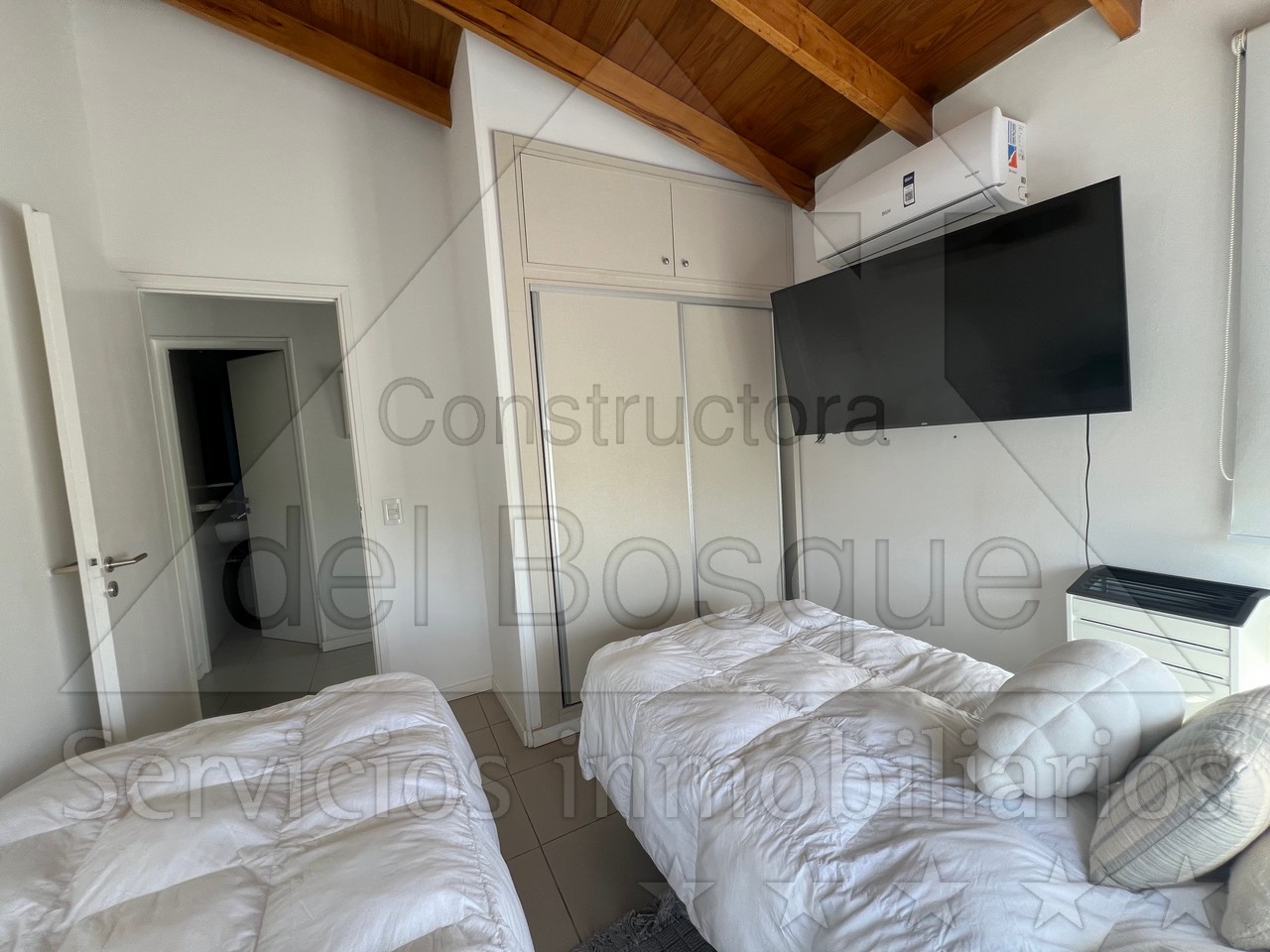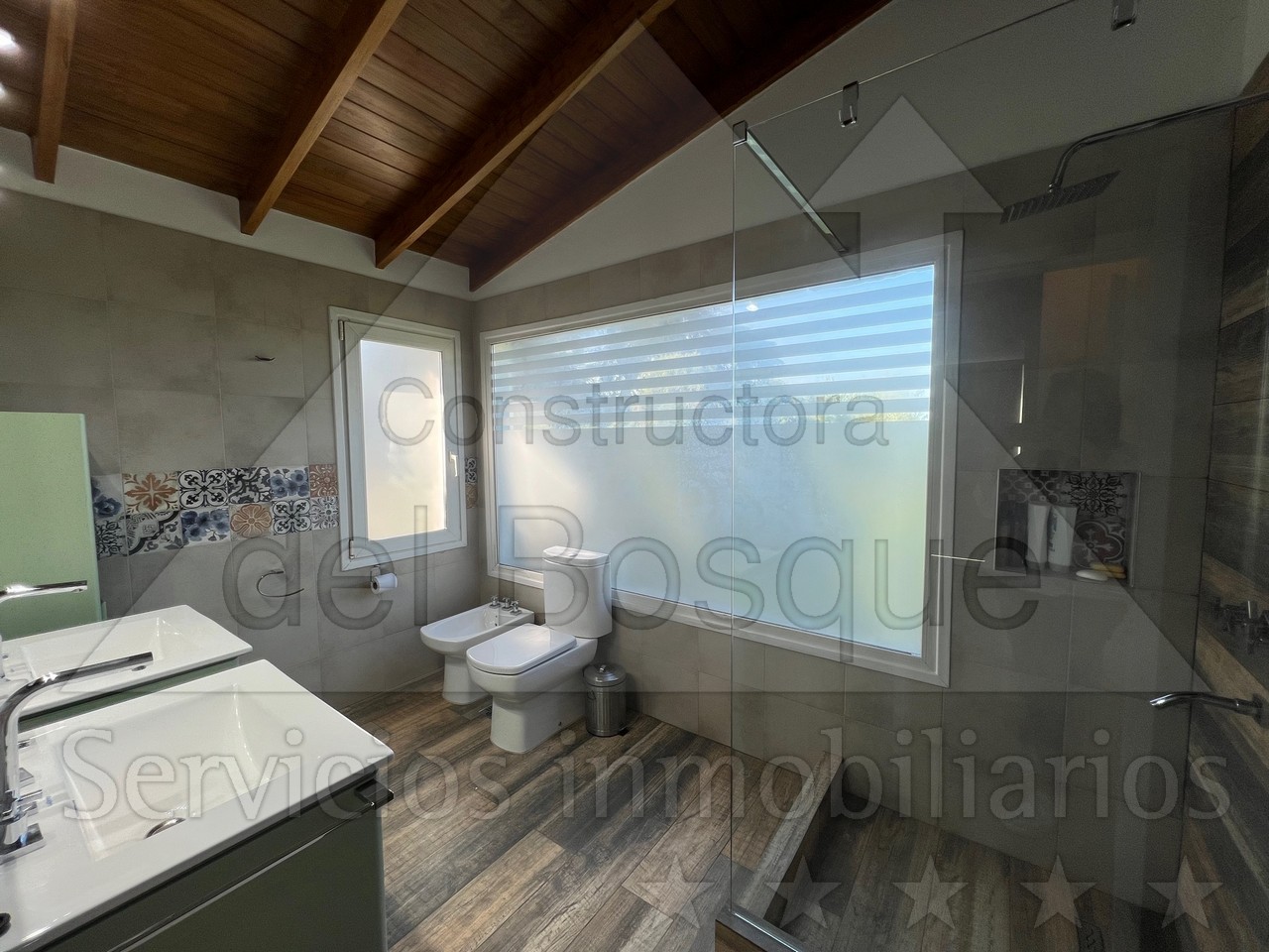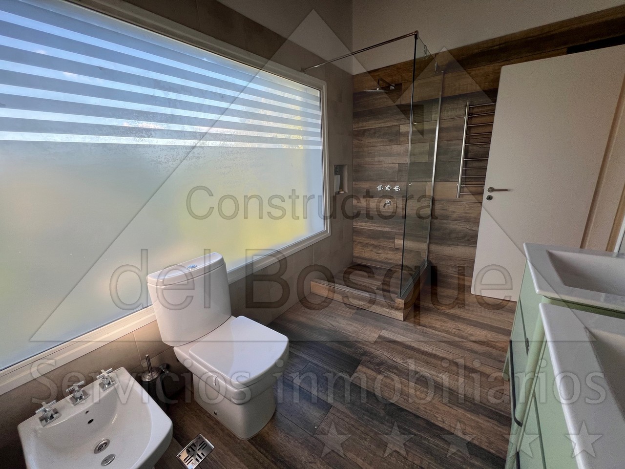 2° dormitorio matrimonial en suite, con sommier matrimonial, placard, y baño completo con doble bacha y ducha.