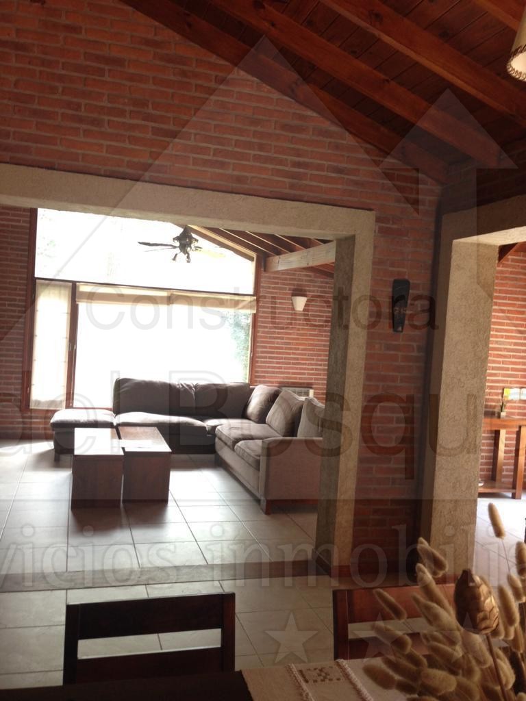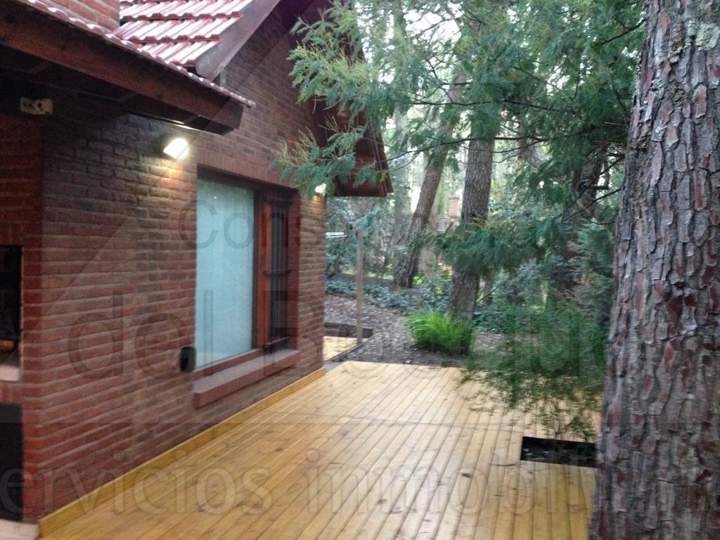 Acceso a la propiedad donde encontramos el living amplio con hogar a leña, calefacción por tiro balanceados, ventilador de techo, comedor súper amplio también con tiro balanceados. Cocina amplia con salida al exterior encontramos mobiliario para el exterior, casita de chicos, un amplio deck el jacuzzi, la parrilla techada amplia con un lindo deck, tendedero en el sector posterior a la casa con ducha exterior.Pergola para un auto y estacionamiento para dos .EL GARAGE QUEDA CERRADO PARA EL USO DEL INQUILINO.