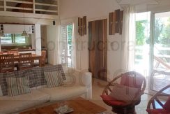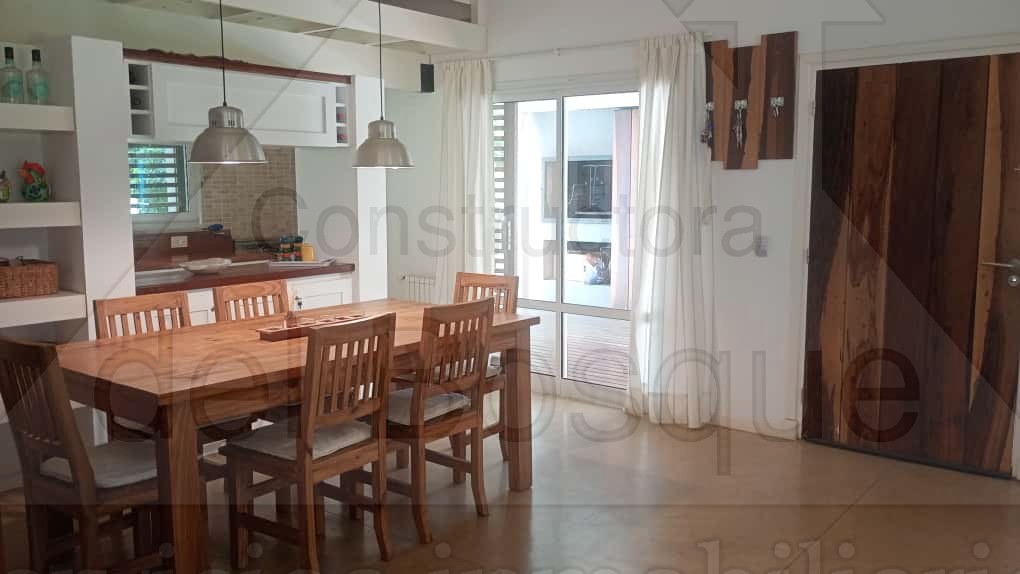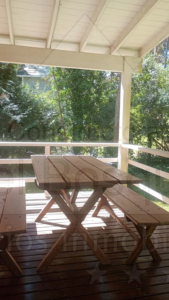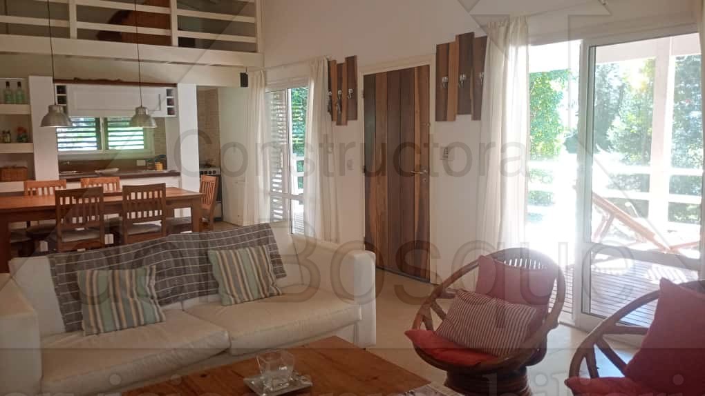 Casa con hermoso parque totalmente cercada, a la casa se accede por escaleras donde encontramos una amplia galería y su parrilla. Desde esta galería tenemos acceso a la propiedad con su living vidriado con hogar a leña, Smart de 42, comedor totalmente integrado y salida a la galería, la cocina se divide por una barra pasa platos , la misma con vista al frente de la casa y acceso al lavadero y la de máquinas. Desde el living accedemos a los dormitorios, 1° dormitorio en suite con cama matrimonial, placar, ventilador de techo, black out y postigos corredizos, baño es en suite completo con bañera.