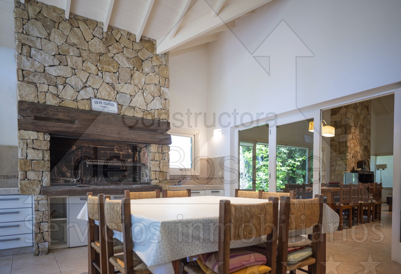 Acceso a la propiedad por escalera, en amplio ambiente living con hogar y comedor integrado, puertas ampias que comunican al amplio quincho, y cocina semi integrada con barra, lavadero.