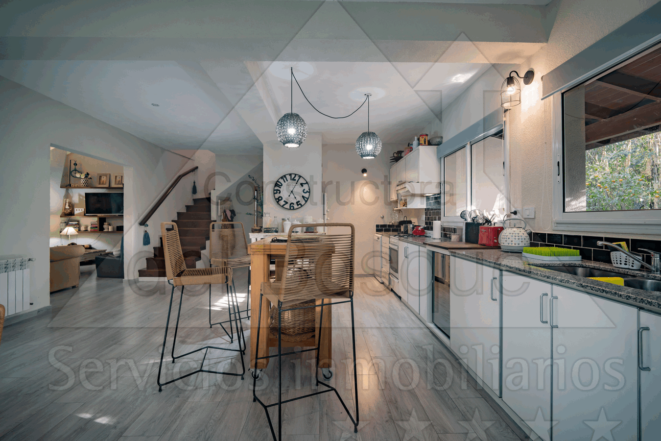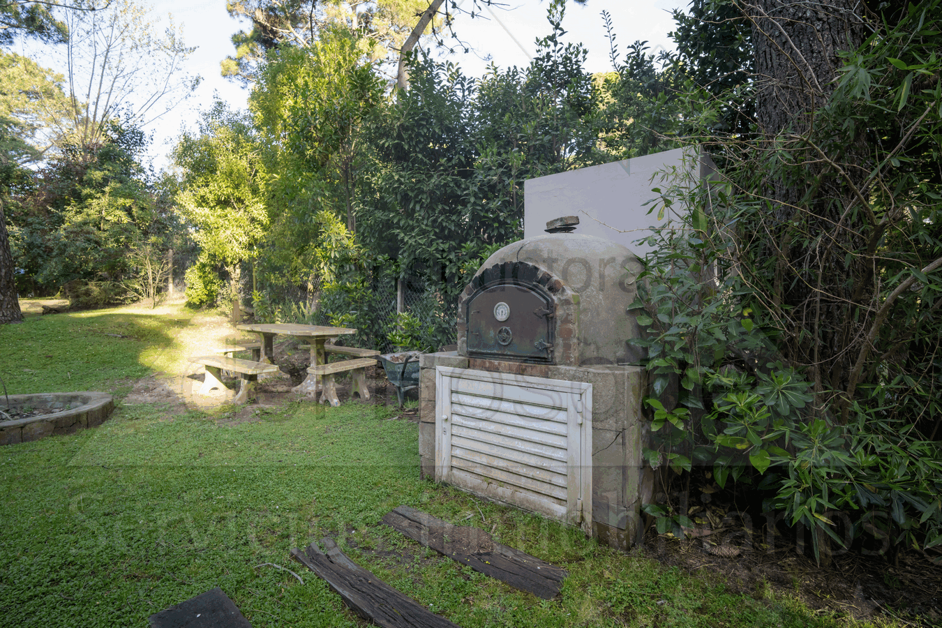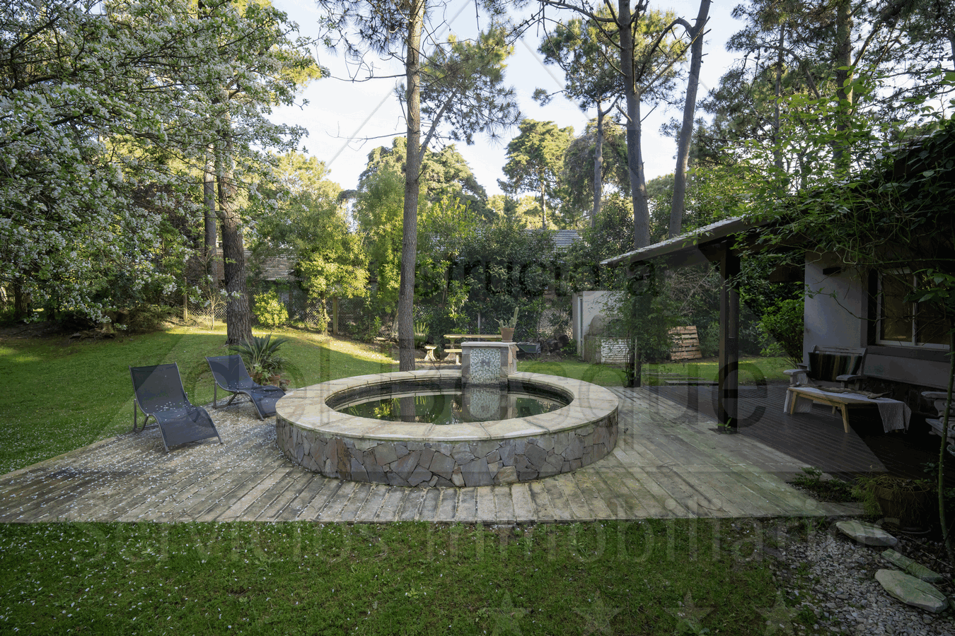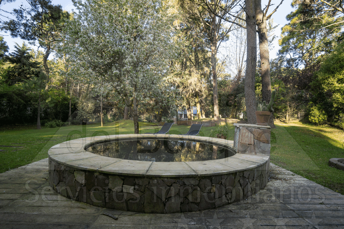 Acceso a la casa por el lateral donde encontramos un amplio living con hogar a leña, comedor integrado con salida a la galeria de frente, parque amplio con una mini pileta calefaccionada, fogonero y parrilla techada.
