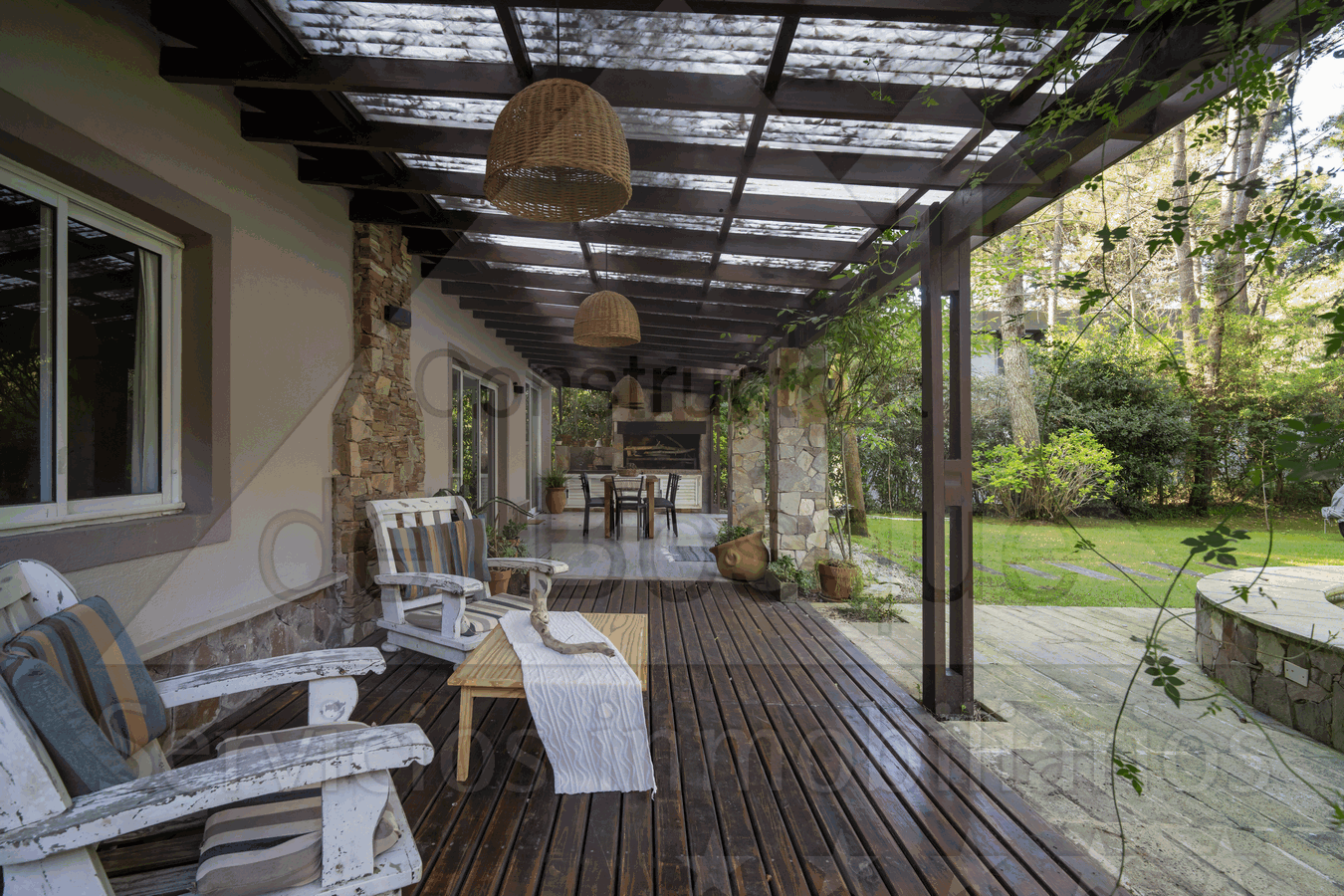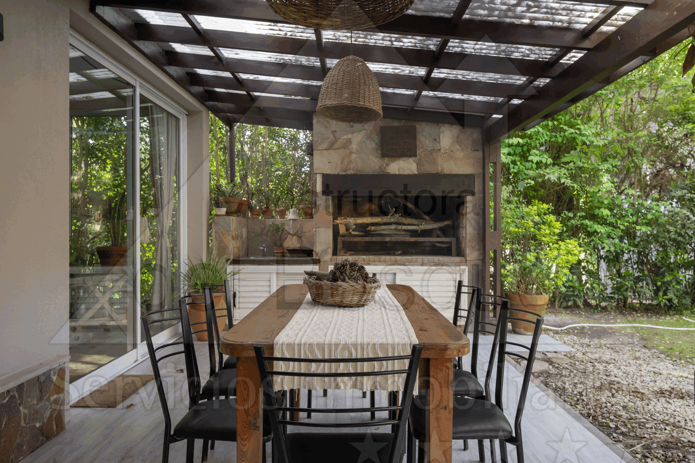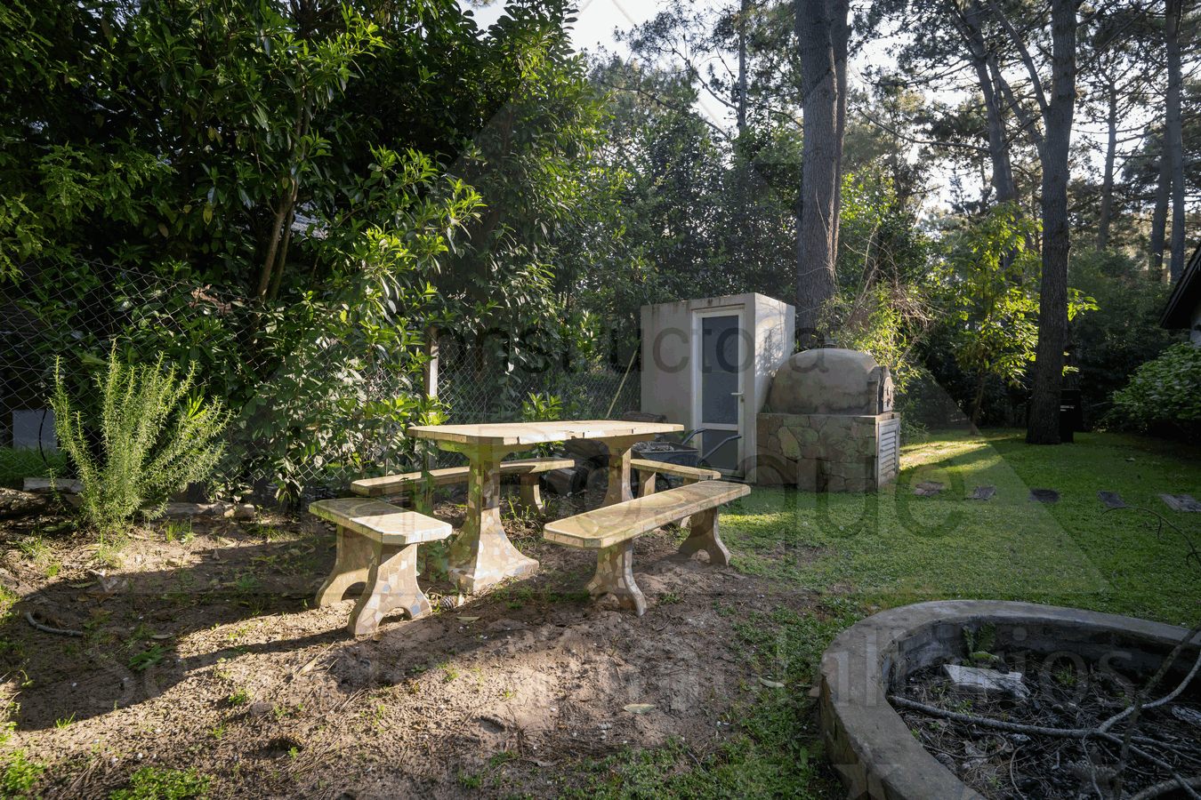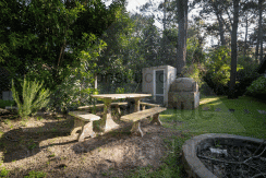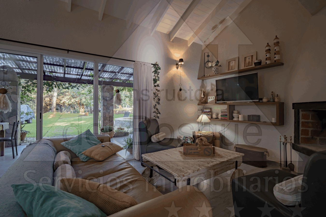 Acceso a la casa por el lateral donde encontramos un amplio living con hogar a leña, comedor integrado con salida a la galeria de frente, parque amplio con una mini pileta calefaccionada, fogonero y parrilla techada.