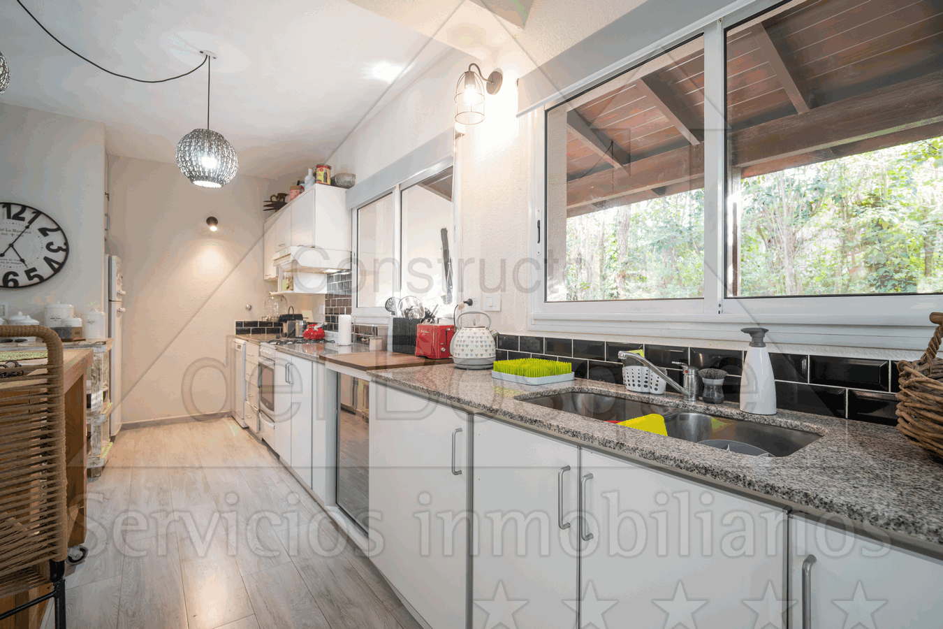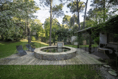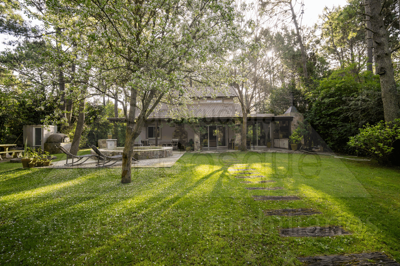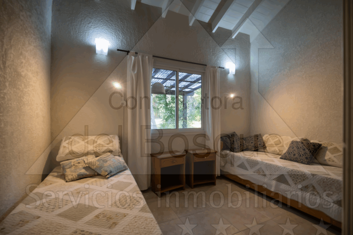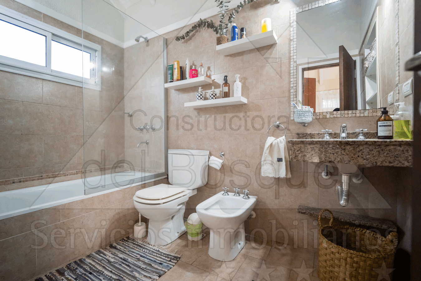 Acceso a la casa por el lateral donde encontramos un amplio living con hogar a leña, comedor integrado con salida a la galeria de frente, parque amplio con una mini pileta calefaccionada, fogonero y parrilla techada.