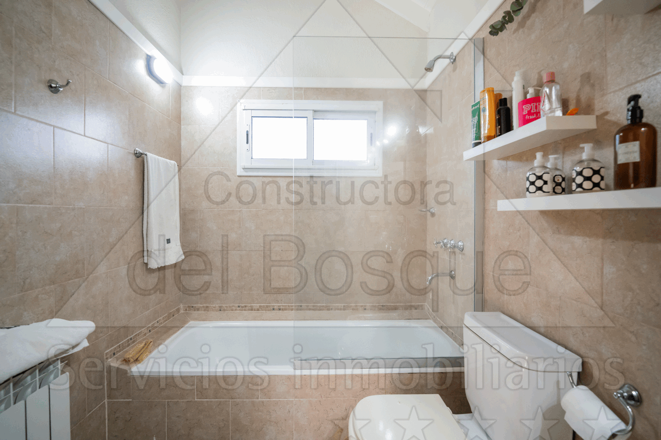 3º Dormitorio en suite con cama matrimonial, placard, ventilador de techo y baño completo con bañera.